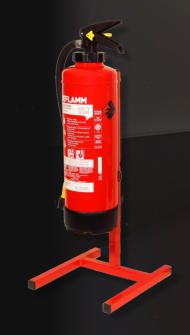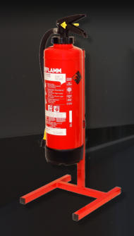 Bodenständer für 3,6,9 oder 12kg Feuerlöscher, freistehend, rot lackiert.